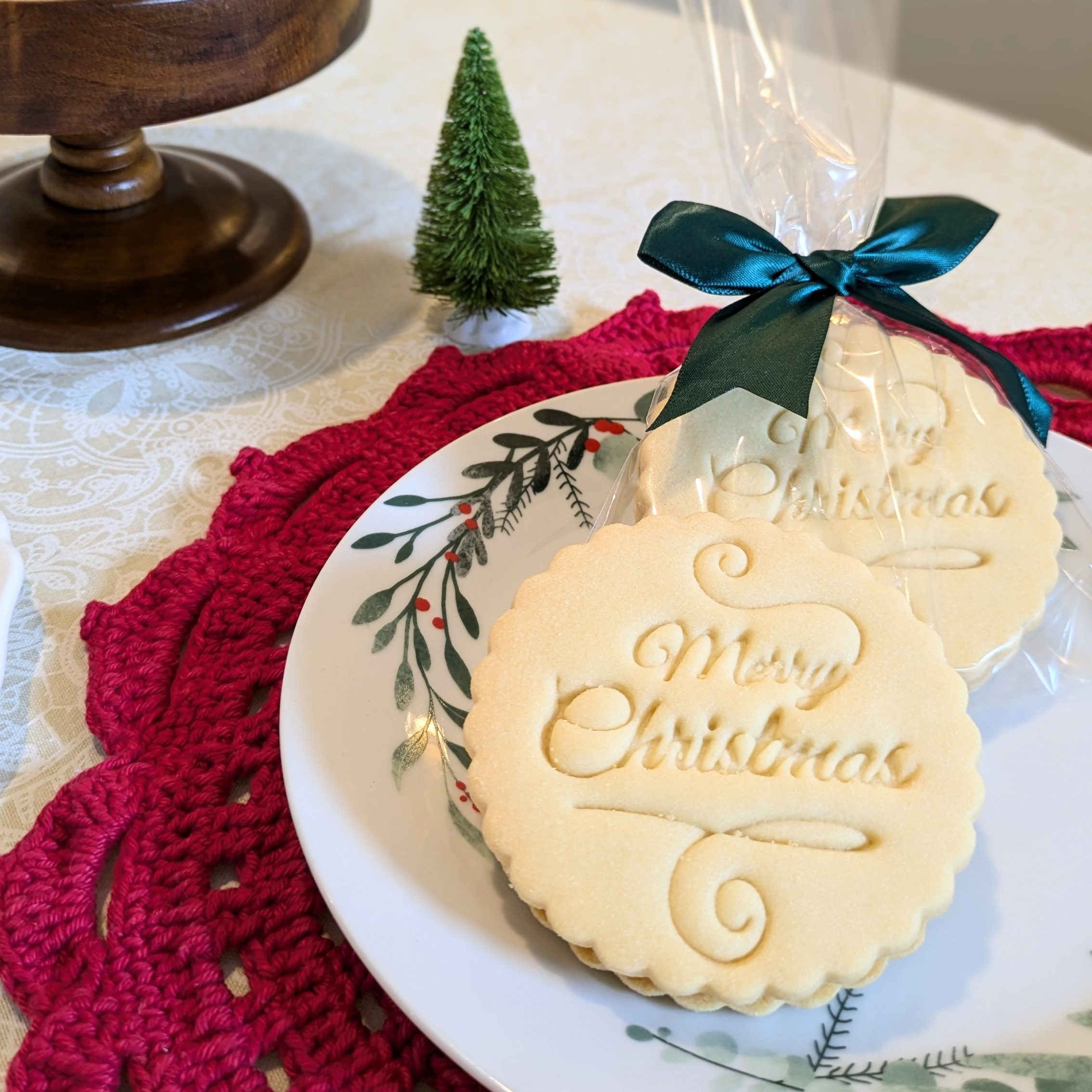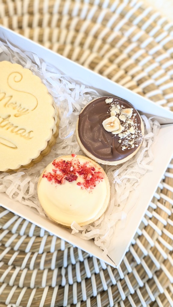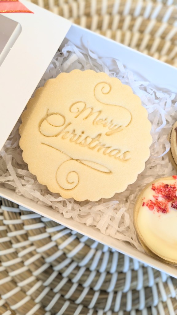 • 1 large Merry Christmas milk chocolate shortbread sandwich.