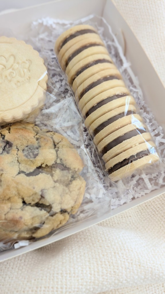 • Milk Chocolate and Dolce de Leche fillings available for the shortbread sandwiches.