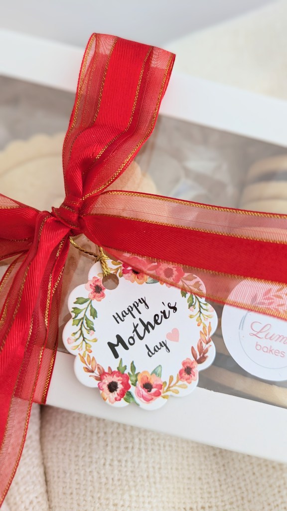 • 4 large Happy Mother’s Day shortbread biscuits.