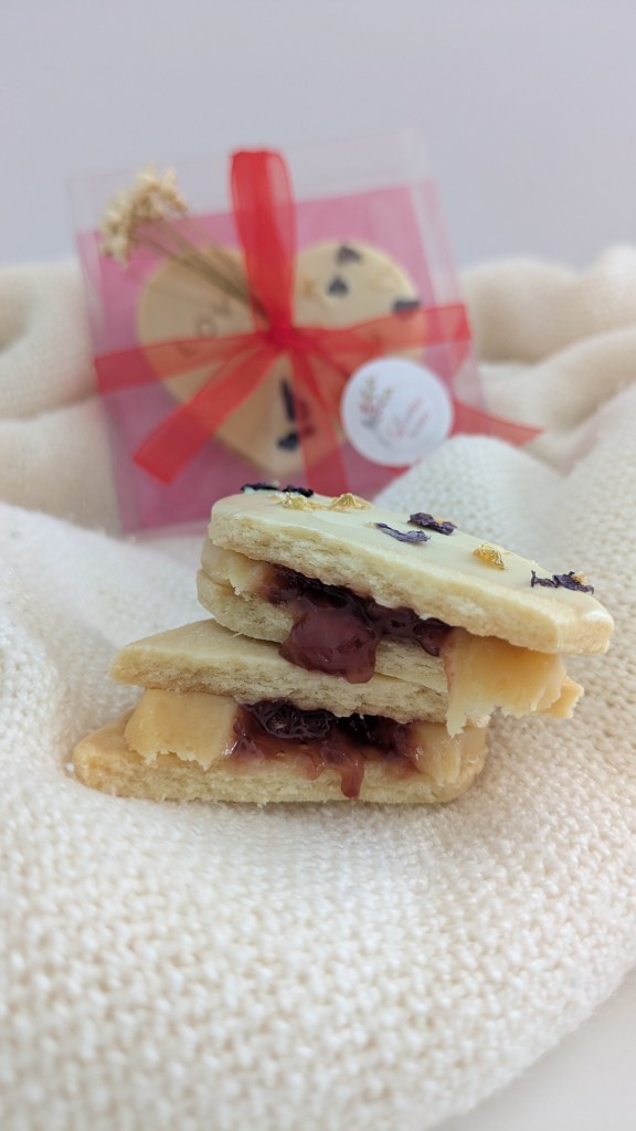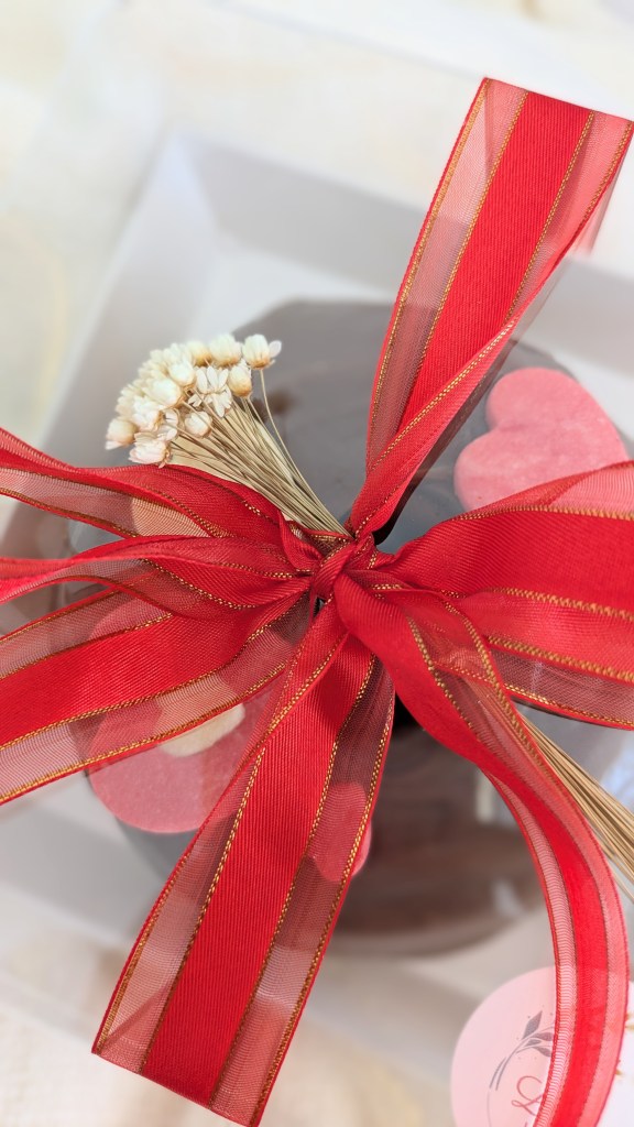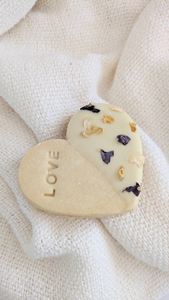 • 1 large heart-shaped Casadinho, filled with white chocolate and strawberry jam, garnished with a white chocolate coat and edible flowers.
